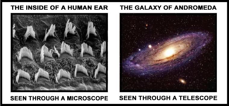 I think it's amazing to look at things that we can only see through a microscope as well as things that we can only see through a telescope, and to realize that we are somewhere in the middle of it all.